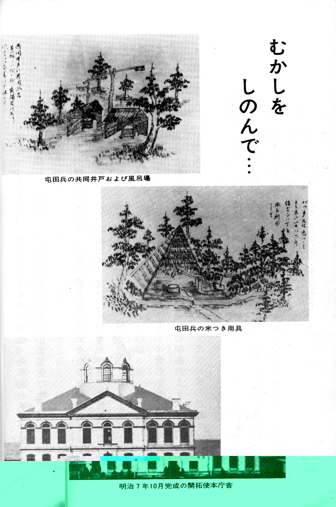 『在住』のころ 屯田兵がはいる前は、発寒には家が二十戸ばかりありましたが、畑も少なく、農業だけでは食べていけませんでした。それで、発寒川の魚をとったり、山で木をきったりしていました。やがて、開拓使で農作物を買いあげるようになったので、人びとはすすんで農業をするようになりました。農作物は、おもに大豆、麦、あわなどでしたが、あとでやさいやじゃがいもも作るようになりました。