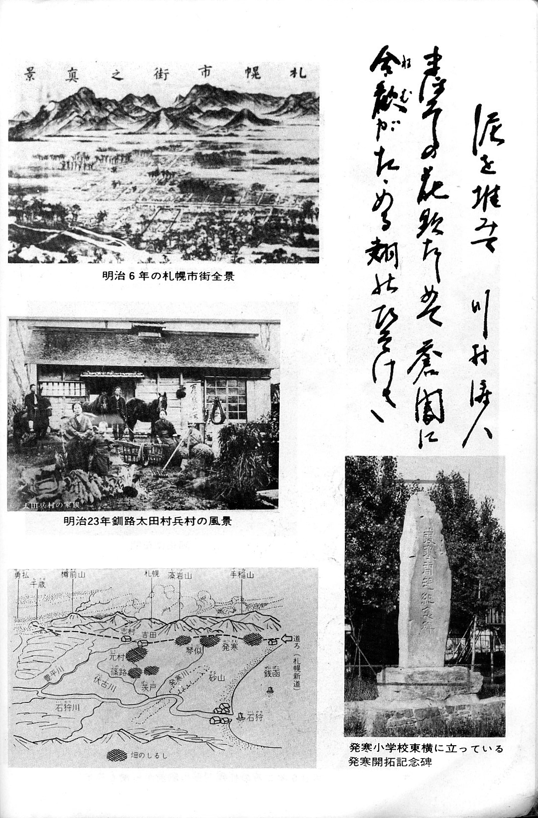 第一回目は、一八◯◯(寛政十二)年、八王子同士百名を、釧路の白糠と勇払に移住させましたが、内地の農業のやり方をそのままもちこんだので、わずか四年で失敗に終わりました。ですから、『在住』としては、第二回目の発寒在住が、ほんとうの移住と考えられます。